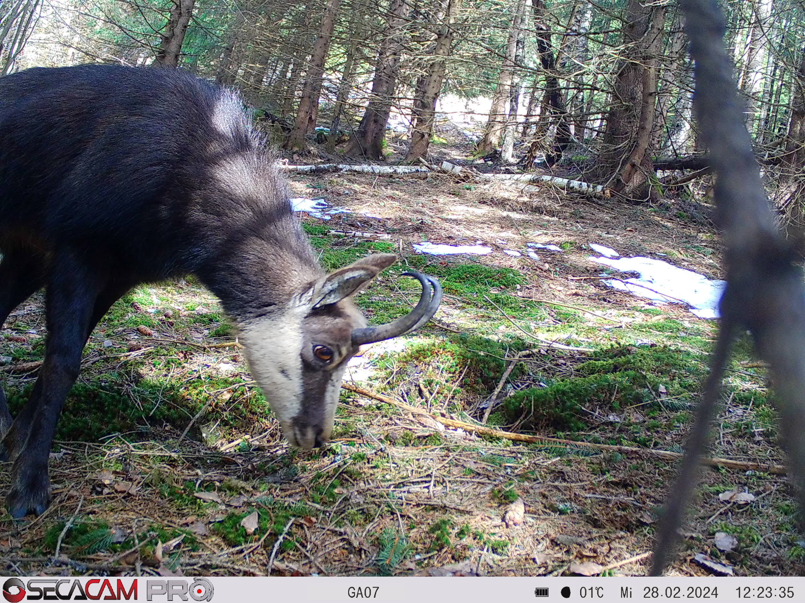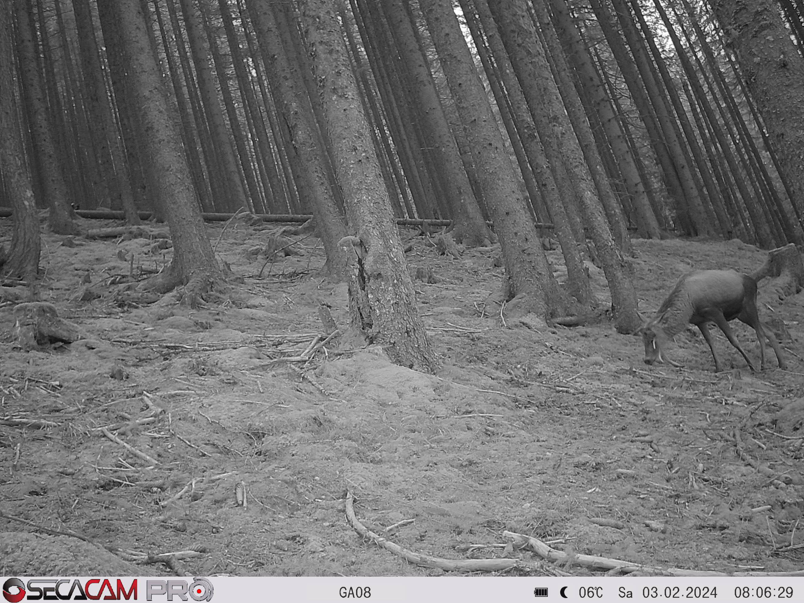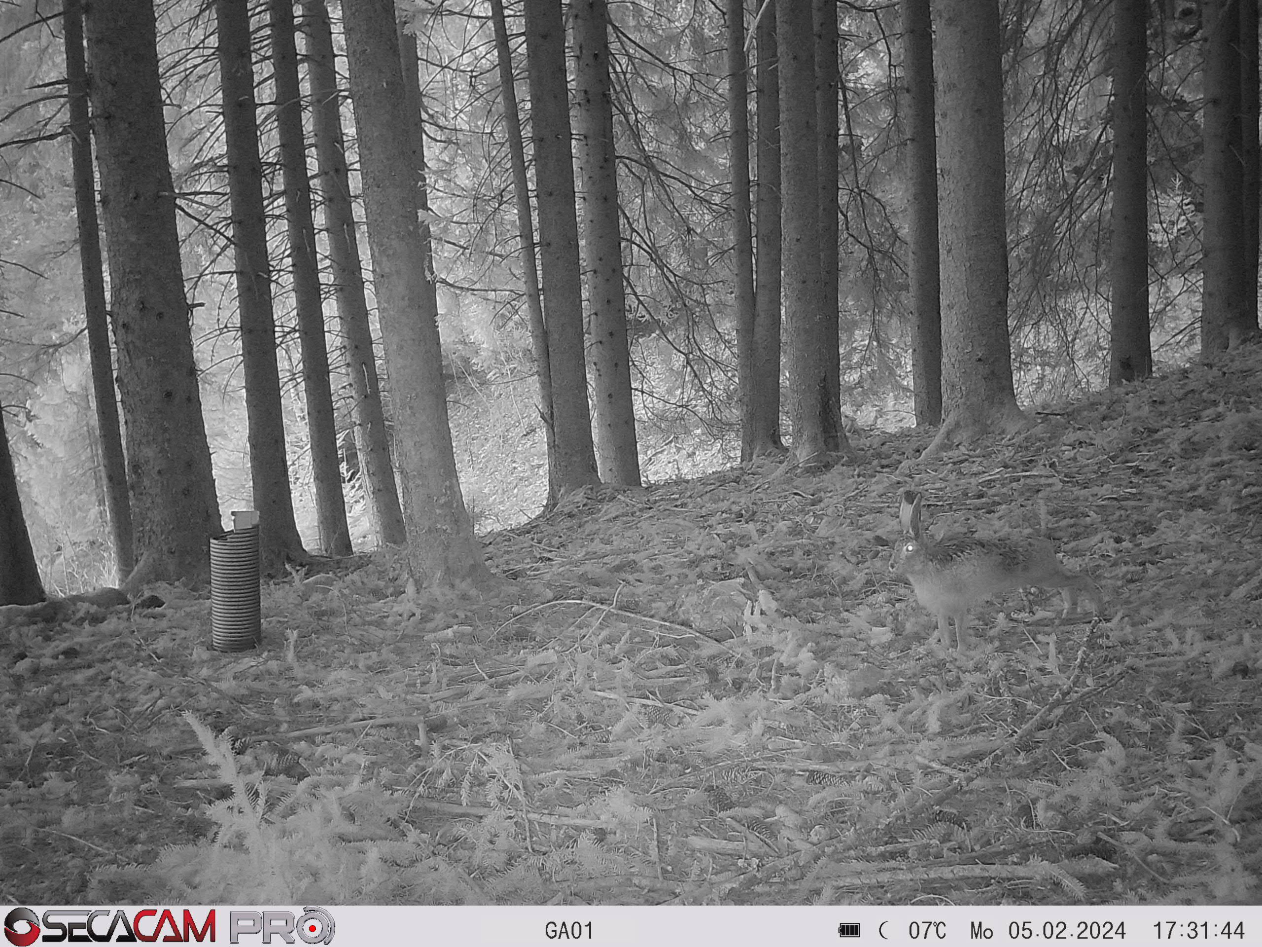 Für das Fotofallenmonitoring wurden 25 Wildkameras vom Typ Secacam Pro Plus des Herstellers Zeiss (VenTrade GmbH, Deutschland) installiert. Diese Kameras haben einen Blickwinkel von 60° und arbeiten mit einem passiven Infrarot-Bewegungssensor, der für das Schalenwild weitgehend unsichtbar ist und es daher so wenig wie möglich beeinflusst. Die Kameraplatzierung folgt in erster Linie der Fragestellung der Dichteberechnung. Die Kamerastandorte wurden anhand eines systematischen Rasters festgelegt und mit Hilfe eines GPS-Gerätes vom Typ Garmin PPSMAP 65 s (Garmin Austria GmbH, 8141 Premstätten, Österreich) im Gelände aufgesucht.